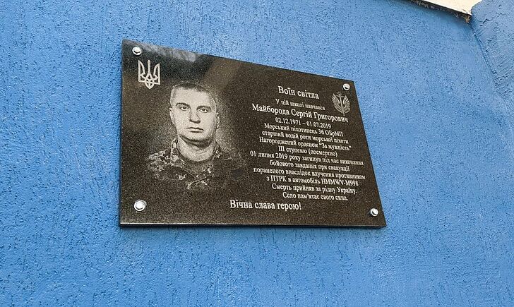У селищі Билбасівка Слов’янського району на приміщенні місцевої опорної загальноосвітньої школи встановили меморіальну дошку захиснику України — морському піхотинцю 36-ї Окремої бригади морської піхоти, кавалеру ордена «За мужність» ІІІ ступеня (посмертно) Сергію Майбороді.