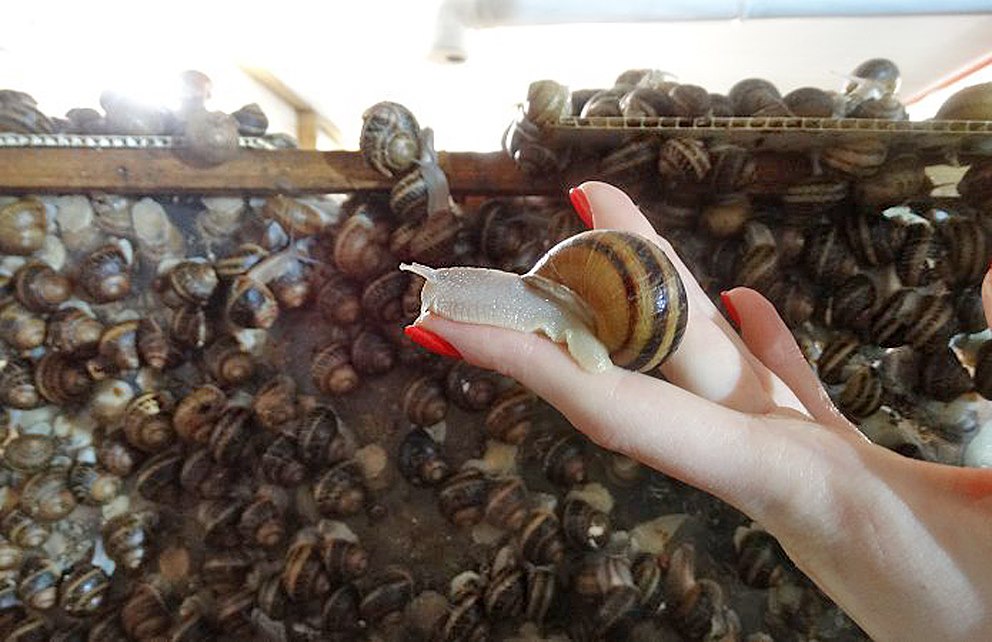 Ольга Пономаренко розповіла про режим равликів, який розписано на весь рік. З листопада до березня вони просто сплять в холодильниках, де підтримують необхідний для них рівень вологості. Навесні їх поміщають до зали репродукції. Тут равлики після зимової сплячки прокидаються, від’їдаються, спарюються та відкладають ікру: за равликами у відділенні репродукції доглядає робітниця Олена Свердзоленко, яка дбає про сон, годування, миття. Жінка каже, що до 15-00 равлики відпочивають, після цього їх слід помити. У спеціальних будиночках равлики відкладають ікру. Її відбирають та поміщають в бокси, де триває процес дозрівання молюсків. Через два тижні з ікри з’являються равлики, яких переносять на поле, де вони ростуть. Удень равлики перебувають під дерев’яними щитами, де ховаються від сонця і сплять. Вночі вони виповзають і харчуються рапсом, який росте на полі, та кормом, що дають фермери. Весь периметр поля огороджено електропастухом, тож равлики не розповзаються.