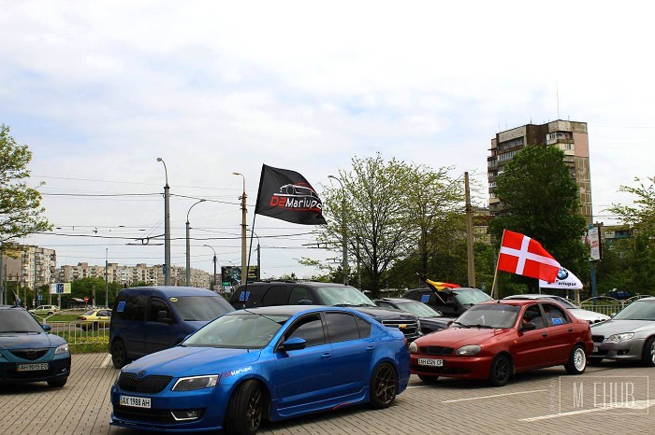У Маріуполі відзначили День Європи, влаштувавши автомобільний пробіг за участі понад тридцяти учасників, які попередньо встановили на автомобілях прапори європейських країн.