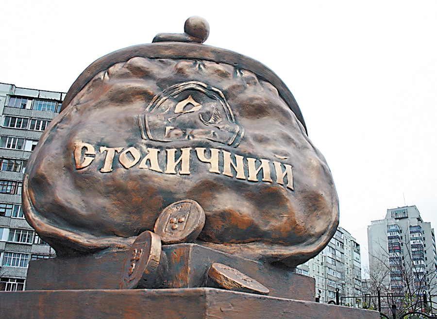 ТАЛІСМАН. Навряд чи знайдеться людина, яка б усе життя обходилася без такої побутової дрібнички, як гаманець. Ось і вирішили сумчани віддати йому належне, і на одній із головних вулиць міста встановили контактну скульптуру. За словами головного архітектора Сум Володимира Бикова, назва обласного центру та історія його заснування всіляко підштовхували до такого кроку. Адже на гербі міста три сумки — за переказами, їх буцімто знайшли козаки у Пслі. А сумка — це майже те саме, що й гаманець. Ось і створив місцевий скульптор Микола Крамарев із пластику, бетону і золотистої фарби 400-кілограмову скульптуру. Профінансував проект комерційний банк.