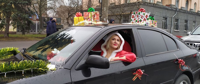 Перед новорічними святами Наталя прикрасила свою автівку новорічними атрибутами — мішурою, іграшками, подарунковими пакунками. Спеціально до свята Наталія сама пошила собі костюм «подруги Санти» і тепер в такому вбранні керує авто. На все витратила 1000 гривень. «Зробила все для того, аби дарувати радість людям, підвищувати новорічний настрій, тому що такий рік був важкий. А у кожної людини, який потрапляє в салон мого авто, піднімається настрій», — розповіла Наталя.