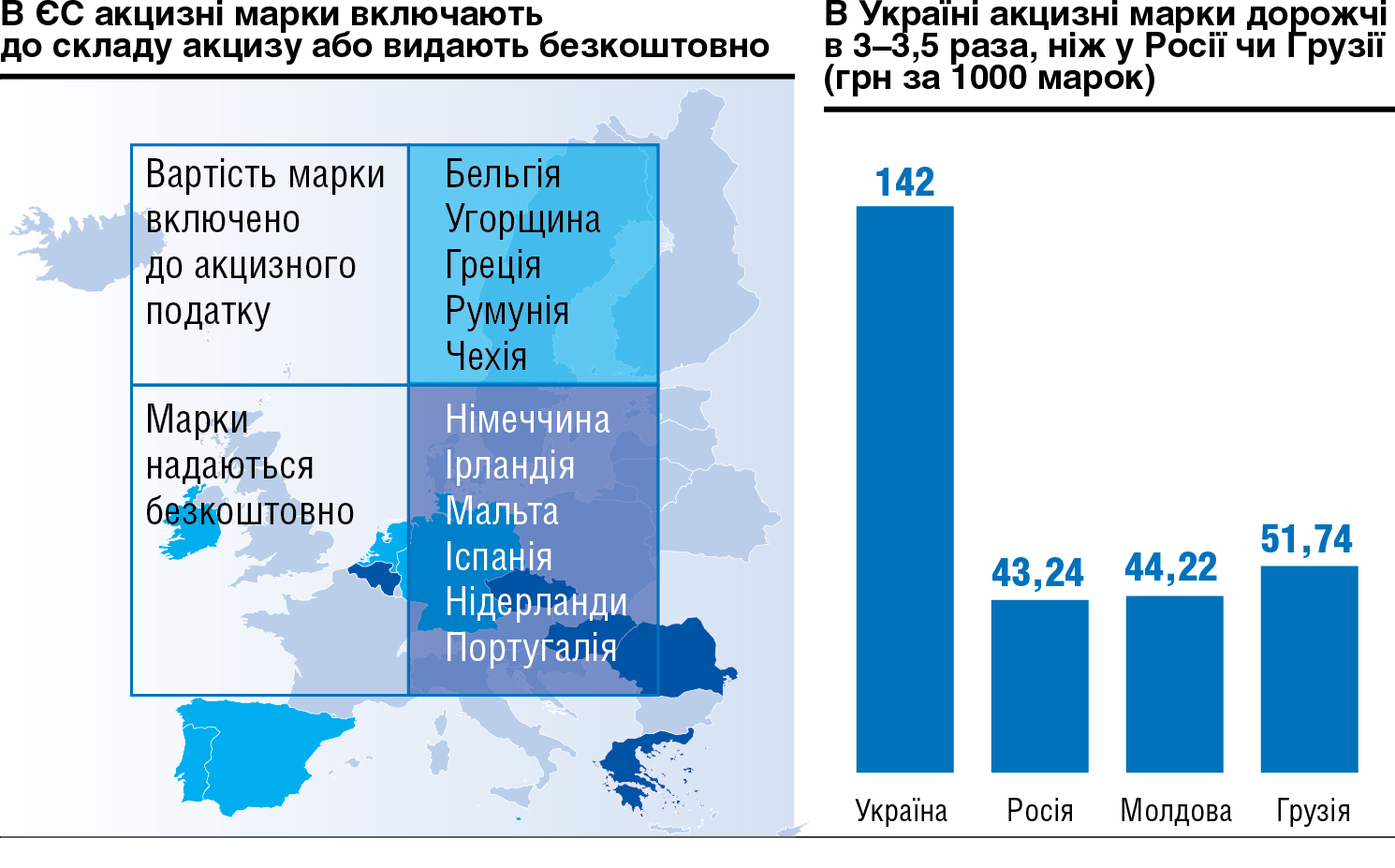 Але міністр фінансів упевнений: ці елементи «не забезпечили головної мети — зменшення нелегального обігу алкогольних та тютюнових виробів і збільшення відповідних бюджетних надходжень. Зокрема, в 2013 році обсяг нелегальної алкогольної продукції зріс і становить близько 40%, у зв’язку з чим держбюджет недоотримав понад 2,3 мільярда гривень», — йдеться у листі Мінфіну. За результатами наради у Міністерстві фінансів, яка відбулася 12 травня ц.р., було виявлено, що нині є всі підстави для зменшення вартості марки акцизного податку в річному вимірі на 496,8 мільйона гривень. До речі, на даний момент вартість акцизних марок залишається найвищою серед країн СНД. Для прикладу, в Україні паперові акцизні марки коштують у 3,5 раза вище, ніж у Російській Федерації.