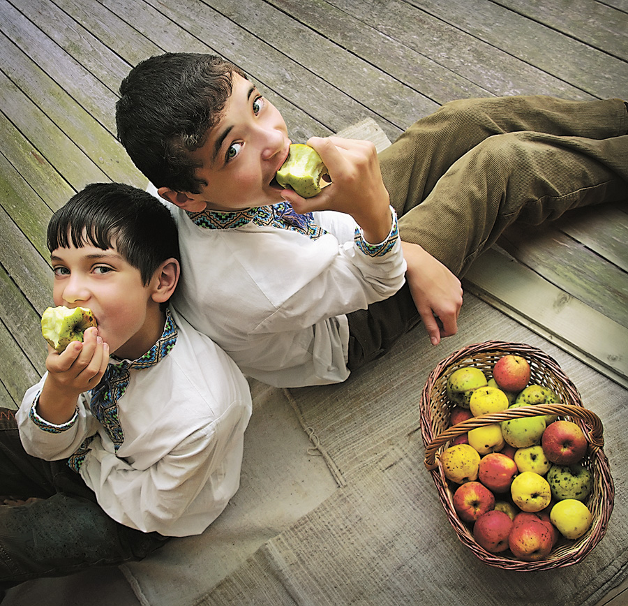 Мудрість приходить з роками, вона в очах жінки зі знімка «На межі століть». У її погляді більше минулого, пережитого, із присмаком таїни, а в братиків-близнюків на фото «Стиглі яблука», схожих мов дві половинки цього фрукта, він спрямований у майбутнє…