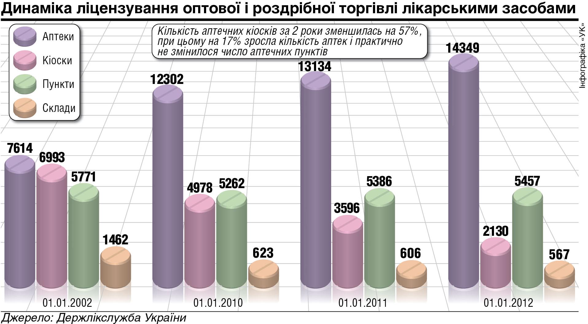 — Якщо йдеться про кіоски, у них, відповідно до чинного законодавства, заборонено реалізовувати лікарські препарати рецептурної групи. Тобто в метро таких ліків апріорі не повинно бути. Під час перевірок ми постійно фіксуємо наявність у кіосках, де не можна створити належних умов для зберігання, приміром, антибіотиків. Тобто суб’єкти господарської діяльності свідомо йдуть на порушення. Саме тому — а в нашій країні таких кіосків залишилося всього 1500 — прийнято рішення, що такі структурні аптечні підрозділи працюватимуть тільки до кінця 2012 року. Повірте, це жодним чином не вплине на фізичну доступність до ліків, оскільки такою діяльністю займаються менше 10% аптек. І саме вони, хоч як це прикро, найчастіше є джерелом реалізації неякісної та фальсифікованої продукції.