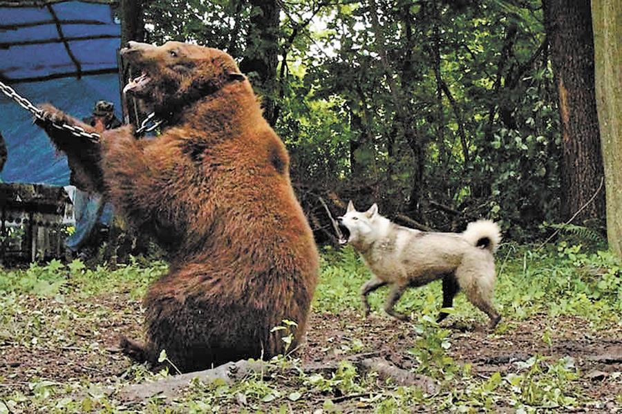 Собаківники з Дніпропетровщини не єдині, хто знущається над ведмедями. Кінологічна спілка України відкрито проводить «змагання» собак «по ведмедю». У квітні цькувати (о, ні-ні, лише обгавкувати) ведмедів збираються у Вінницькій області, у жовтні — на Донеччині. Цікаво, як це поєднується з вимогами ст. 19 Закону України «Про Червону книгу України»? Там же чітко сказано, що спеціальне використання (добування, збирання) об’єктів «Червоної книги України» здійснюється «у виняткових випадках лише у наукових і селекційних цілях, у тому числі для розмноження, розселення і розведення у штучно створених умовах». І лише за дозволом Мінприроди. Яке такого дозволу, як ми з’ясували, не надавало!!!