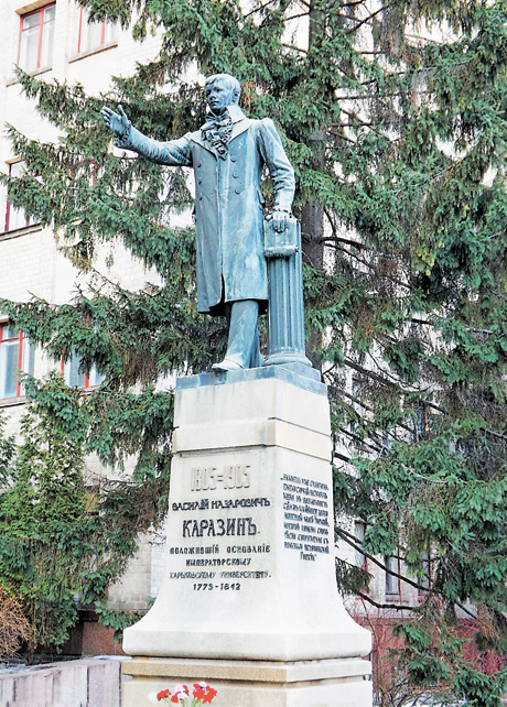 — Біля центрального входу в університет стоїть пам’ятник В. Н. Каразіну. Яка історія монумента, і чи це єдине місце, де увічнено пам’ять науковця?