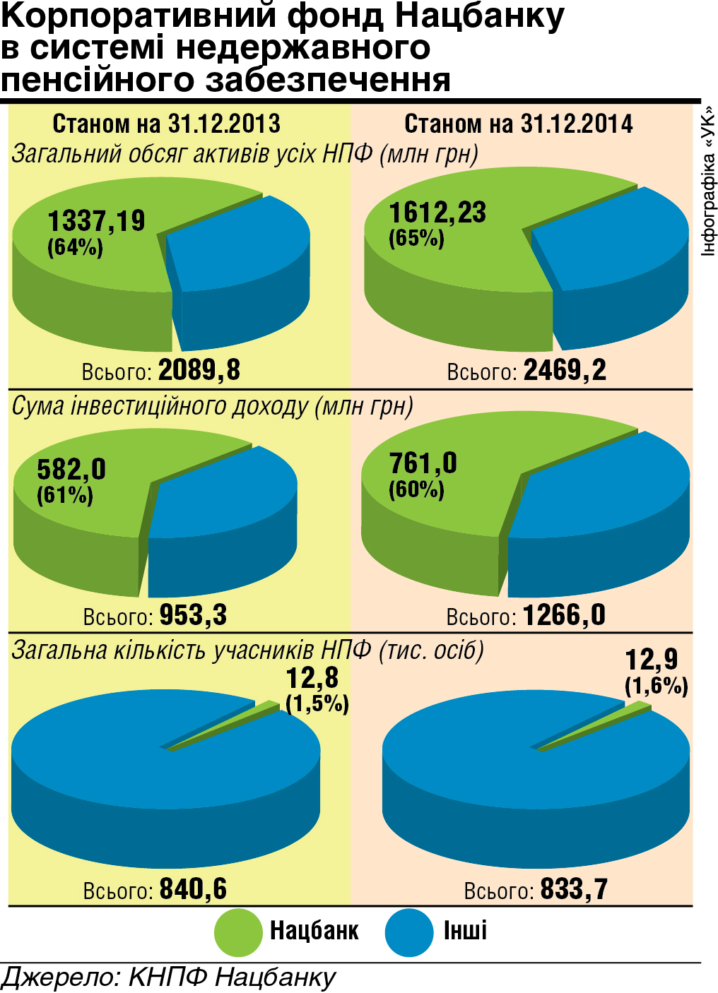 «НПФ Нацбанку — єдиний НПФ (з 76. — «УК»), одноосібний засновник якого здійснює його адміністрування, управління активами, їхнє зберігання. Тож не працює один із принципів захисту пенсійних активів — розмежування функцій обслуговуючих фонд компаній», — зазначає директор Національної асоціації НПФ України і адміністраторів недержавних пенсійних фондів Тетяна Шевкун.