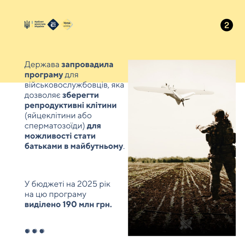 Держава запровадила програму для військовослужбовців, яка дозволяє зберегти репродуктивні клітини для можливості стати батьками в майбутньому. Про це повідомляє пресцентр Урядовий портал.
