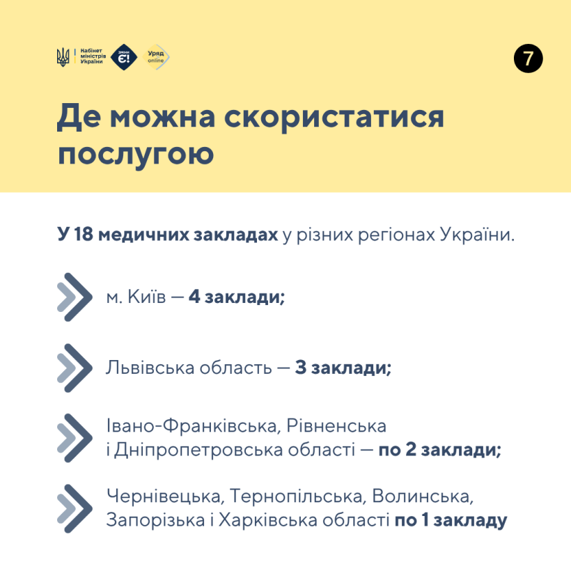 Послугу надають 18 медзакладів по всій Україні. Як скористатися програмою – дивіться в інфографіці.
