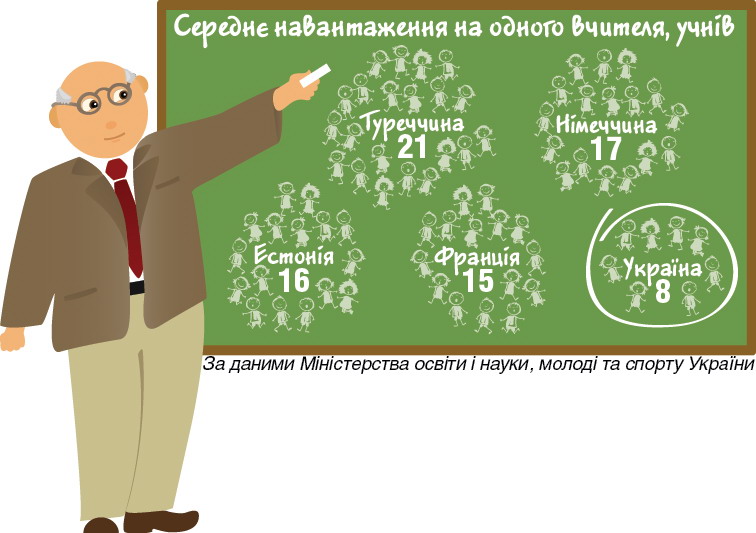 А ось повертаючись до школи, треба говорити не лише про навантаження вчителів, а й про наповнюваність класів. Адже нині в Україні функціонують 605 малокомплектних шкіл, де за партами сидять усього до десяти учнів. Тож, скажімо, сільський учитель не винен, що навчає двох-трьох учнів замість тридцяти.